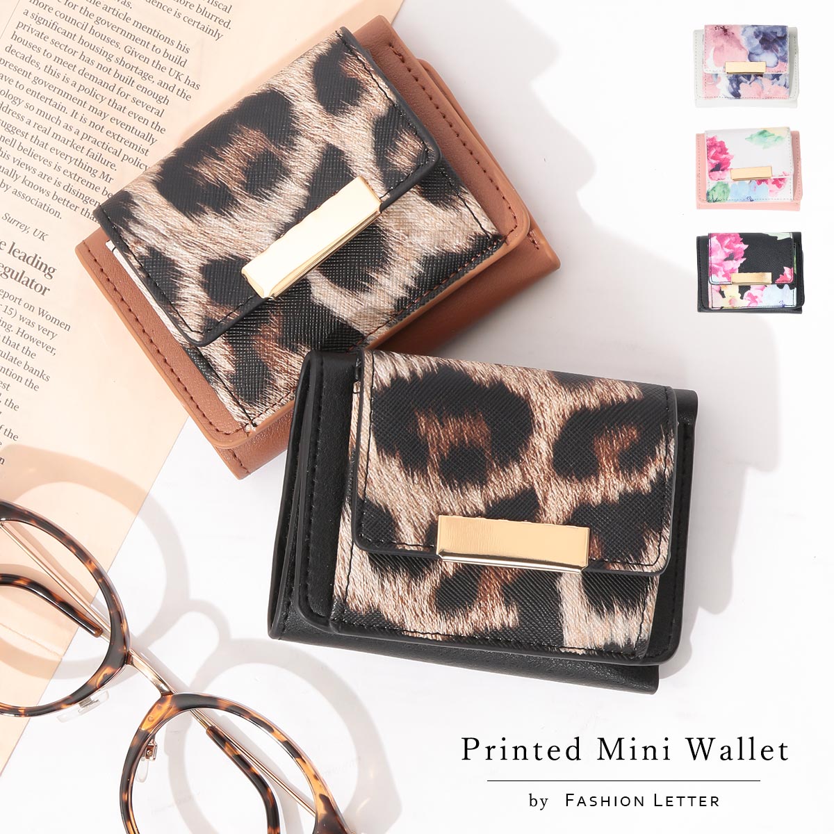 メール便送料無料 選べるプリントデザインミニ財布 レディース 財布 3つ折り 三つ折り 機能性 収納力 小銭入れ コインケース カードポケット カード入れ レオパード 花柄 ブラウン ブラック エコレザー フェイクレザー 合皮 大人 パーティ 女子会
