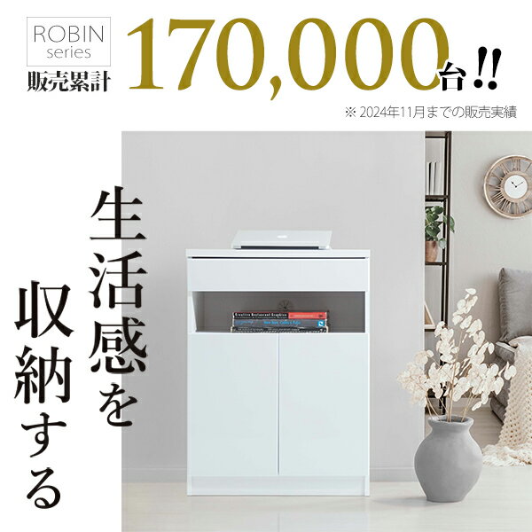 配線収納付きリビングキャビネット ロビンキャビネット 幅60cm ファックス台 電話台 ルーター収納 スリム おしゃれ 木製 卓上 プリンター台 リビング収納 ホワイト
