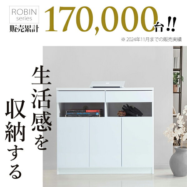 配線収納付きリビングキャビネット ロビンキャビネット 幅90cm ファックス台 電話台 ルーター収納 スリム おしゃれ 木製 卓上 プリンター台 リビング収納 ホワイト